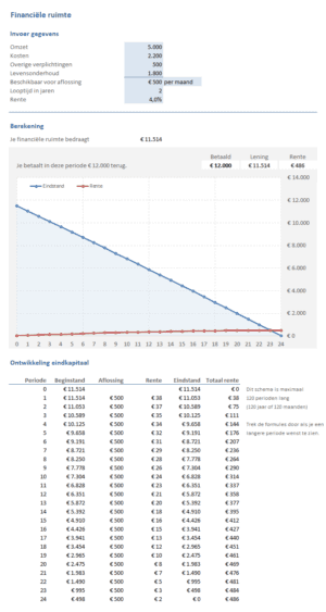 Wat is je financiële ruimte? Bereken hoeveel geld je kunt lenen als je weet wat je maandelijks overhoudt, hoe hoog de rente is en wat de looptijd is.